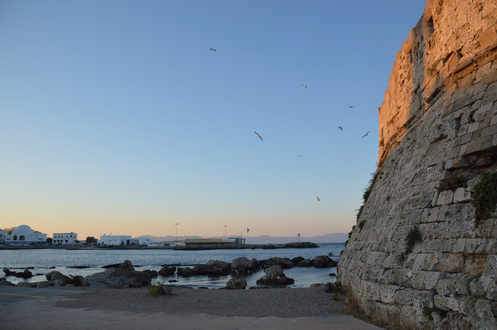 Port Mandraki działa nieprzerwanie od 2500 lat, obecnie służy przede wszystkim celom turystycznym. Lokalne biura podroży oferują rejsy na najbliższe wyspy lub tez podroż w morska ton. My jednak woleliśmy nacieszy się lądowymi atrakcjami wyspy. Spacerując dalej, wzdłuż portu dotarliśmy do traktu prowadzącego do Twierdzy Agios Nicolaos dzisiejszej latarni morskiej, widzieliśmy po drodze 3 weneckie młyny. Legendy głoszą, nad zatoką znajdował się słynny posag Heliosa-Kolos Rodyjski będący jednym z siedmiu cudów świata antycznego. Dostęp do portu jest strzeżony przez łanie i jelenia na kolumnach, które znajdują się również na herbie wyspy. Warto dodać, ze jeleń jest gatunkiem endemicznym, zagrożonym wyginięciem, charakteryzujący się płaskim porożem. Za czasów rzymskich na drugiej z kolumn znajdowała się wilczyca -symbolizująca Rzym. Po triumfalnym odzyskaniu niepodległości rodyjczycy zastąpili ten posąg łanią.