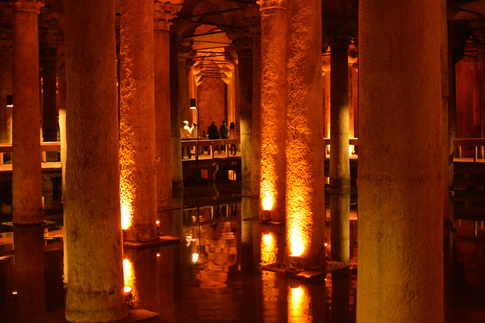 Było piękne październikowe popołudnie kiedy wybraliśmy się na odkrywanie podziemi miasta sułtanów. Zaledwie kilka kroków dzieliło nas od nieodgadnionych przestrzeni. Bazylika cysternowa Cysterna Yerebatan, jest największą krytą cysterną w Stambule skonstruowaną w VI w.n.e. za panowania Justyniana Wielkiego. Jej zadaniem miało być zaopatrywanie pałacu cesarza w wodę na wypadek wojny i oblężenia. Woda była doprowadzana do zbiornika akweduktem z Lasu Belgradzkiego. Po zdobyciu Konstantynopola przez Turków cysterna pełniła przez pewien czas rolę użytecznego zbiornika wodnego, jednak bardzo szybko uległa zapomnieniu gdyż korzystano z bieżącej wody czerpiąc ja z akweduktów.